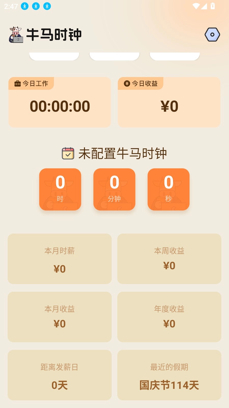 牛马计时器具备一键计算功能,操作十分便捷,只需输入详细的薪资与工作时长,就能迅速得到精准的数据。借助它,您可以实时了解自己的分钟收入情况。其页面设计简约美观,还能查看当前时间,方便您掌握自身的工作时长。打工人可通过牛马时钟安卓版快速计算自己的薪资。