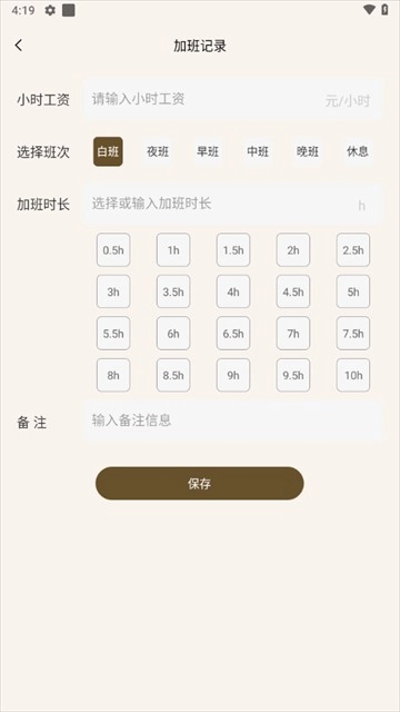 3、节假日、周末等加班时间按倍数计算,收益自动显示,保障每分辛苦有回报。
