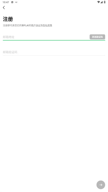 1、在手机上安装flai应用,打开该软件后点击“注册”按钮进入相关页面;
