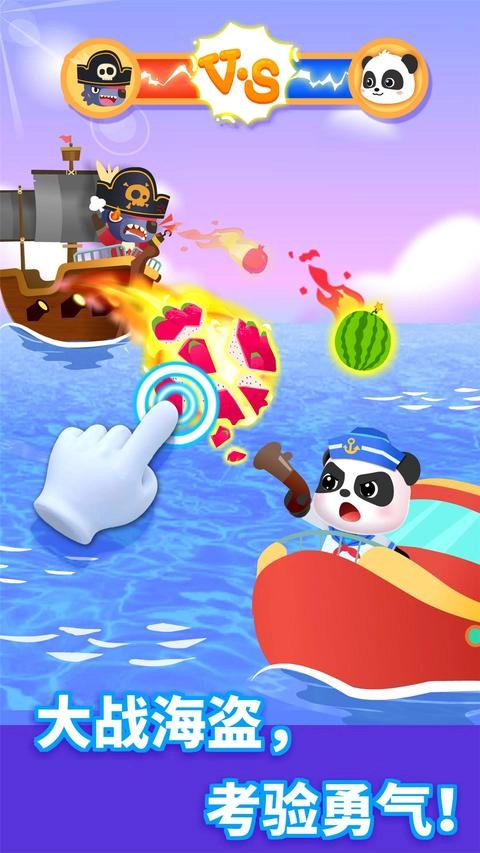 出发寻宝咯!遇到暴风雨怎么办?宝宝驾驶船只,躲避海上障碍,朝着避风港,加速前进。遭遇海怪攻击?拿起炮弹,瞄准、射击,驱赶海怪。克服困难,抵达宝藏岛,神秘宝藏在哪里?敲开石头挖挖看!