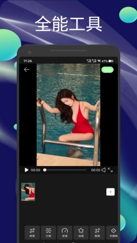 1、涵盖视频剪切、裁剪、变速、旋转、添加字幕、滤镜、背景等多种专业编辑工具。