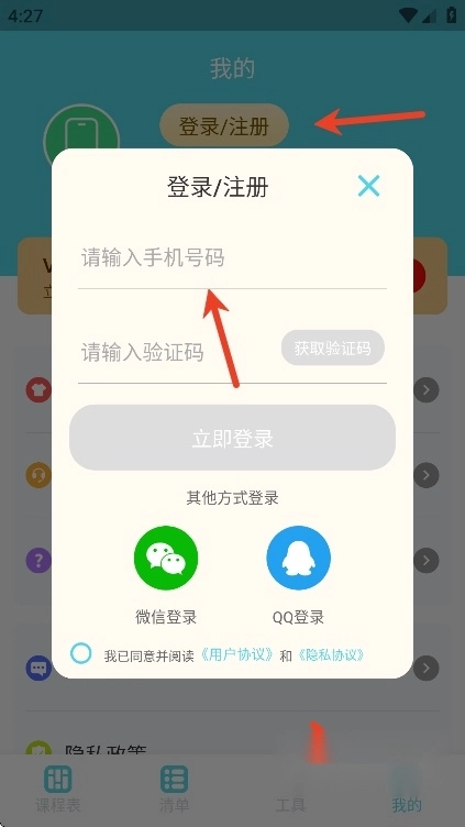 用户们可点击“我的”页面中的“登录/注册”按钮,通过手机号完成账号的登录或注册操作。