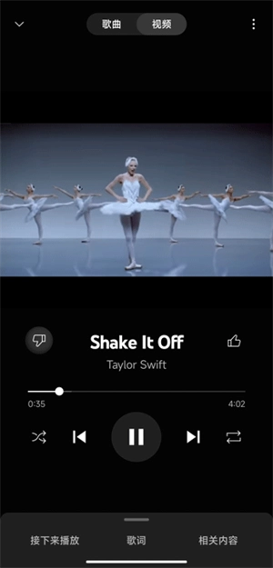 6、在歌曲详情页可观看对应MV,并获取更多关联信息如歌词、相关推荐等。