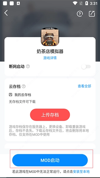 1、在应用的首页找到并点击MOD按钮。
