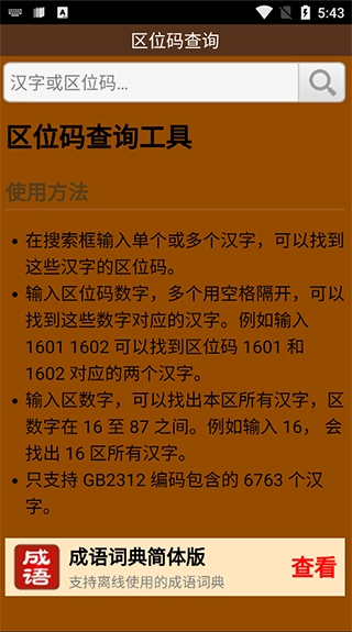 汉字区位码查询系统安卓版说明