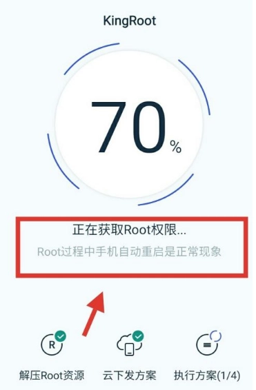 2、将会自动检查root环境和进行root并且重启手机