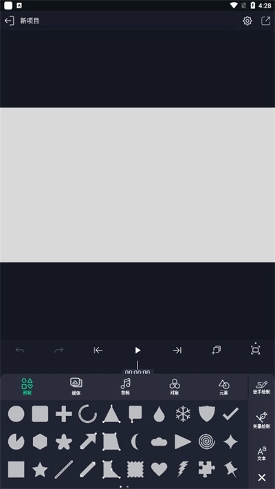 5、可以添加形状、文本、媒体(手机上的图片和音乐还有视频)、图纸、元素;