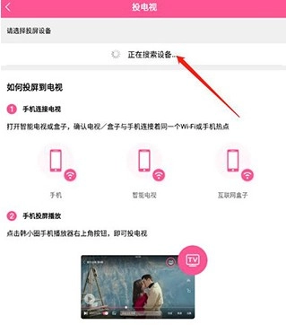3、然后等待搜索设备,点击投屏设备;