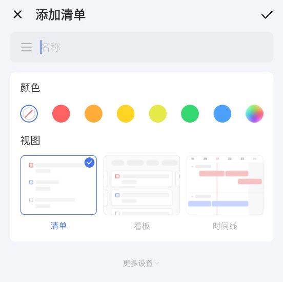 3、输入清单名称,例如“工作任务”、“学习计划”或“本月目标”,并选择合适的颜色与视图方式。