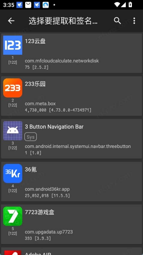 2、选择需要签名的应用。