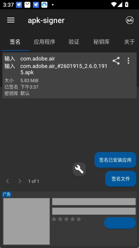 4、在手机或平板电脑上对apk/jar/zip文件进行签名操作。