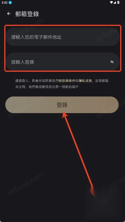 3、输入电子邮箱账号和密码即可快速登录(首次登录自动注册为新账号)
