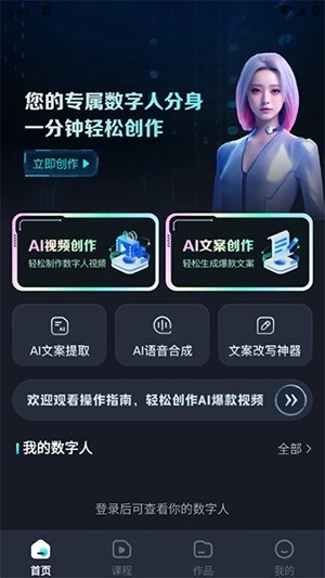 2、在AI视频创作板块,支持一键生成个性化数字人视频,简化制作步骤,提高效率。