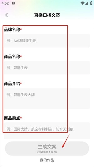 4、选择所需功能,填写相关信息和要求后,点击生成即可快速获得专业文案。