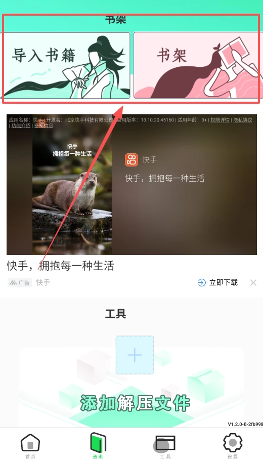3、如果你想导入手机里的书籍,记得找到书架功能,点击导入书籍后文件会保存在书房,并在书架中展示。