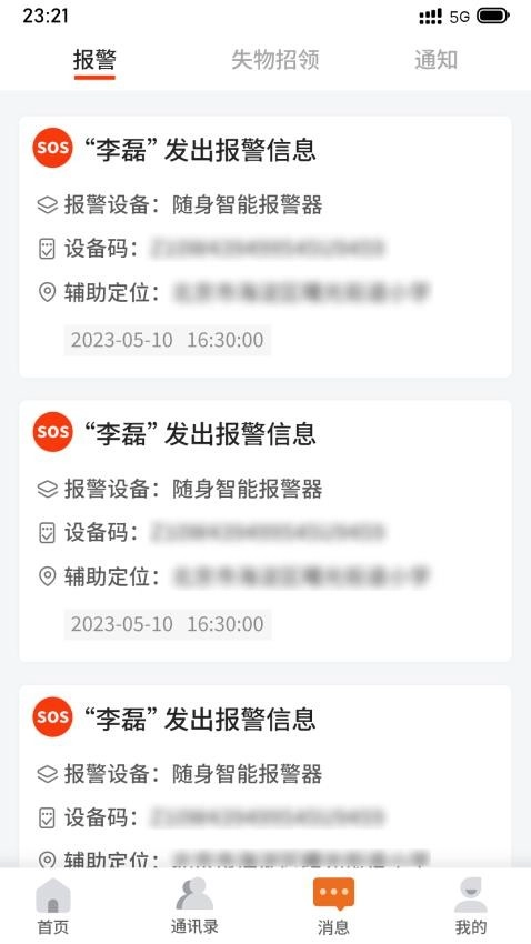 在消息中心中就可以查看设备的通知信息,查看失物招领的信息,便捷查看。