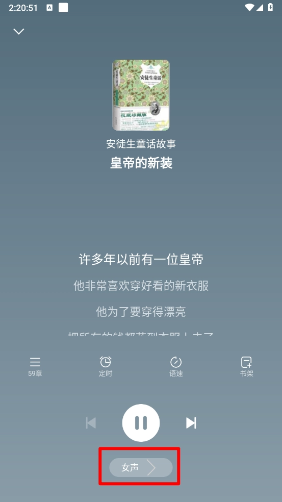 4、在播放页面点击"女声"按钮。