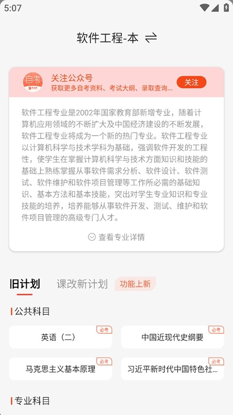 5、点击“课改新计划”板块,即可查看公共基础课、专业核心课程等相关内容。