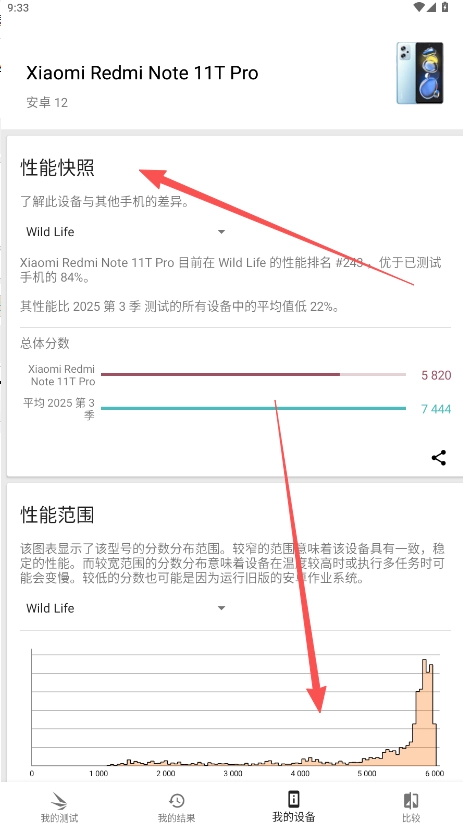 2、点击“我的设置”查看3DMark通过率的主要组成部分:性能快照、性能范围、性能OS排行榜以及规范等具体配置详细明细。