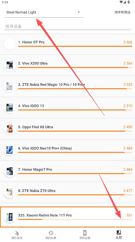 3、若是需要查看当前手机品牌与其他品牌的手机通过率对比,也可以通过“比较”功能去查看详细。