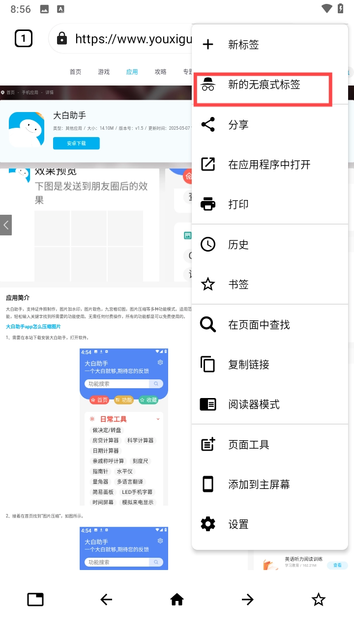 4、再接着点击网页页面右上角的三点,即可开始新的无痕式标签。