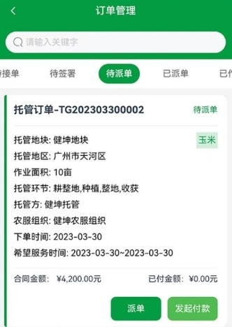 2.服务组织层面。可为农业生产托管服务组织整合业务订单,提供数字化管理平台。