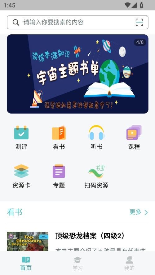 3、软件内配备了听书、看书、课程等多种形式的学习资源,能从多方面助力你学习英语。