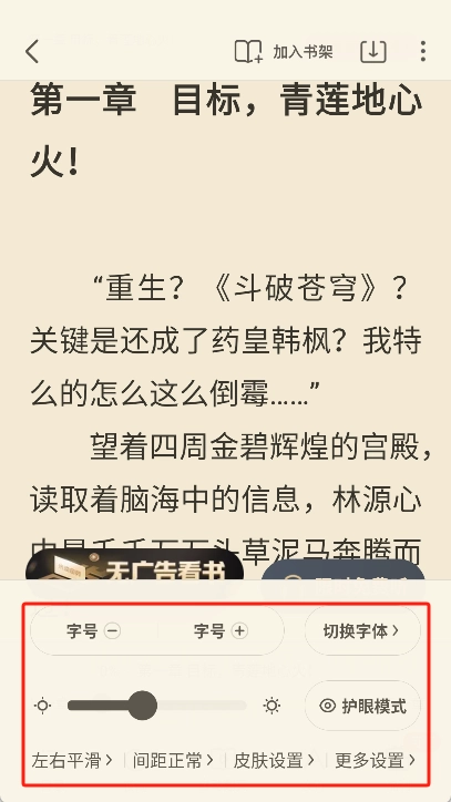4、阅读设置:在阅读小说时可以根据自己的喜好调整字体大小、背景颜色、亮度等阅读设置。
