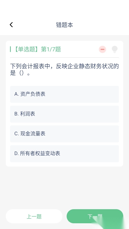 4.如此用户就可以查看所有的历史错题了,点击“下一题”按钮查看所有的错题