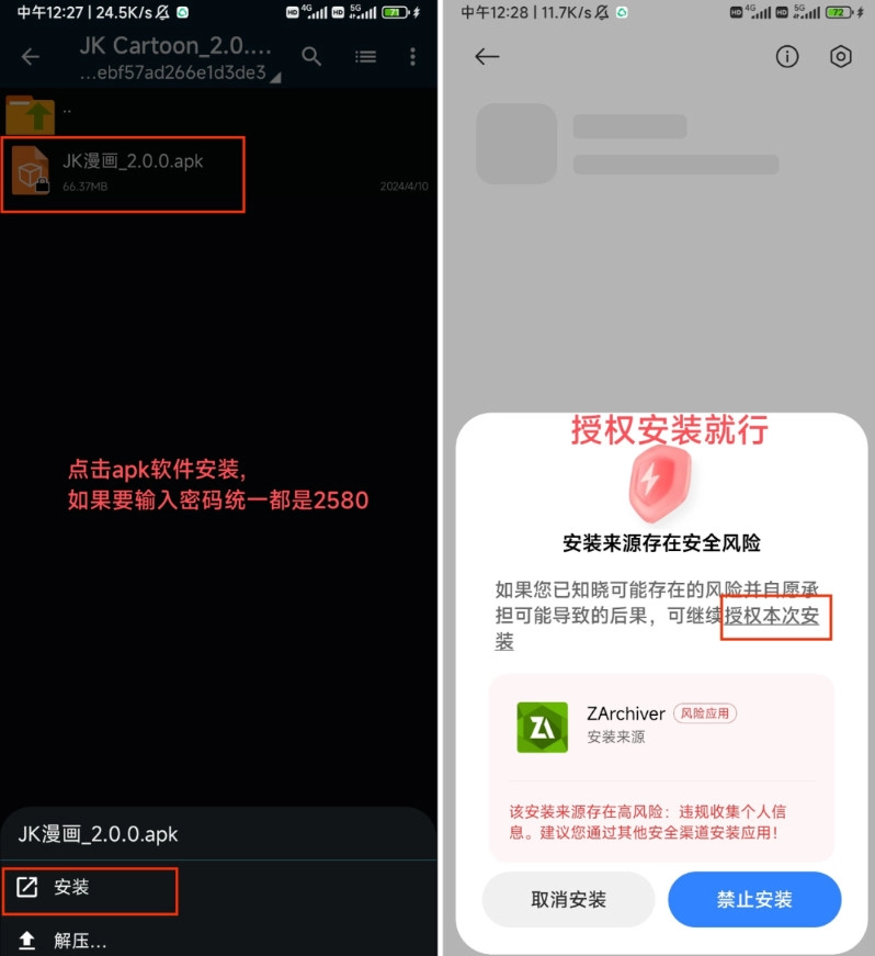 4.点击apk软件安装,可能需要输入密码,最后授权安装即可。