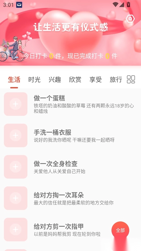 用户可以根据自己的需求,设置恋爱清单,并追踪完成进度。