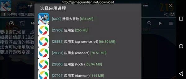 2、进入游戏后,点击gg的悬浮球,找到你正在运行的游戏