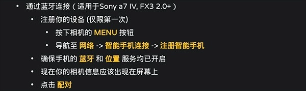 2、通过蓝牙连接(适用于Sony a7 IV, FX3 2.0+ )