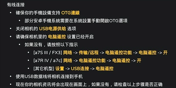 如果您的手机和相机都有 USB-C 接口:任何一根 USB-C 转 USB-C数据线且速度USB2.0以上的都可以正常工作