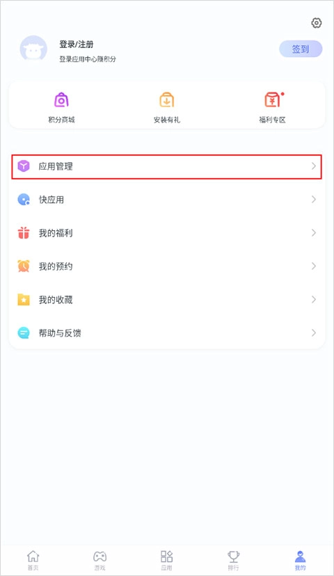1. 进入应用后,在“我的”页面里找到并点击“应用管理”选项。