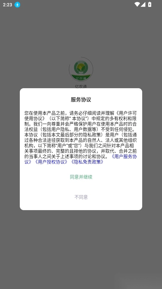 1.打开软件阅读“服务协议”点击“同意并继续”进入
