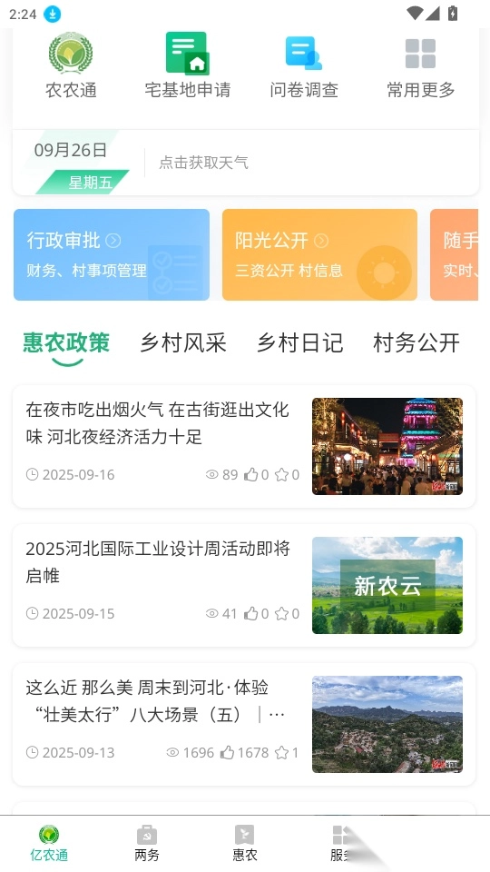 推送的各种乡村资讯、惠农政策内容十分丰富,用户可获取到丰富的惠农政策资讯内容查看。