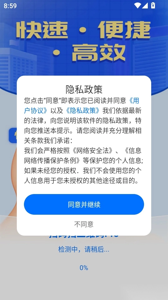 1.首先打开软件阅读“隐私政策”后,点击“同意并继续”按钮进入