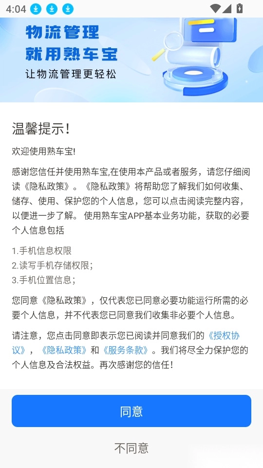1、首先打开应用点击“同意”按钮来进入中。