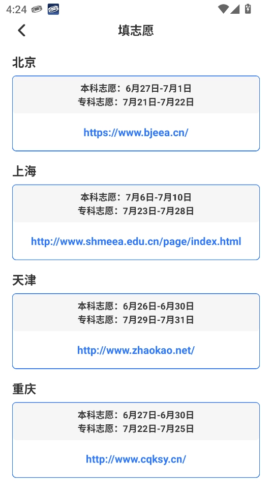 2、然后你就能查看各个省份填报资源的时间了,还能通过链接直达对应的网页