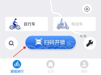 4、完成以上操作后,找到一辆可以正常使用的公共自行车,在本应用中点击“扫码租车”按钮,扫描车锁上的二维码,即可开锁骑行;