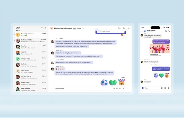即使外出时,也能在所有设备上轻松与其他Teams用户聊天。
