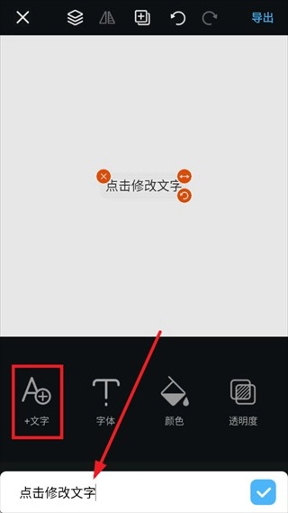 2、点击+文字,在底部的输入框输入文字