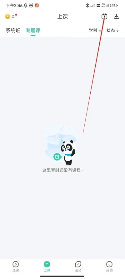 2、单击右上方日历图标即可查看自己的上课安排