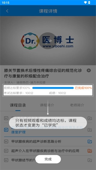 5、只有视频观看和成绩均达标,课程状态才变更为“已学完”