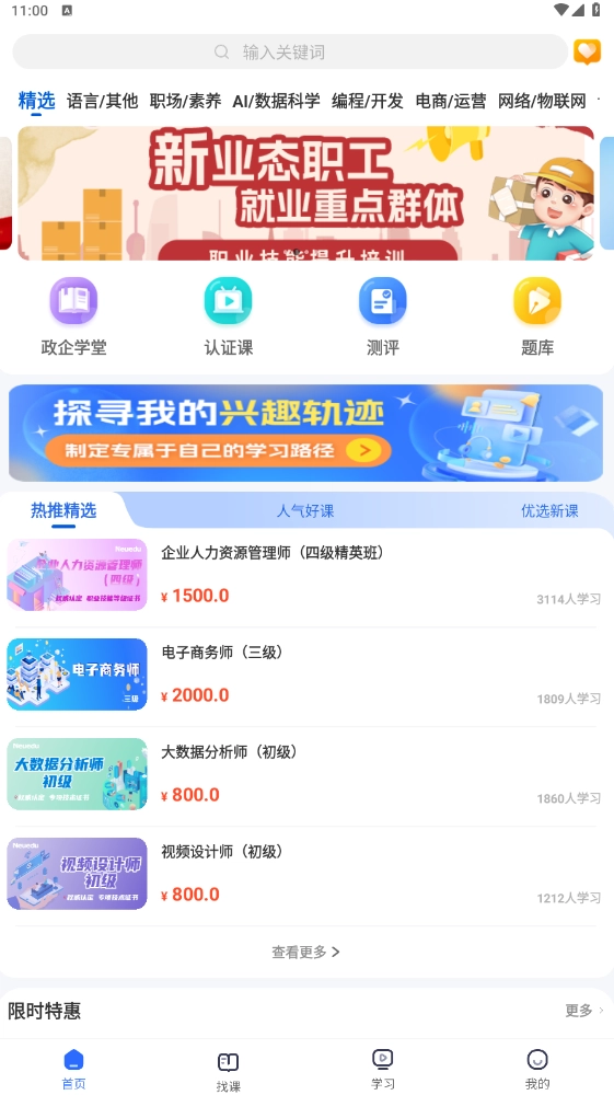 2、当然你有可以在找课板块分类中查看你需要的课程;