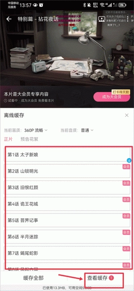 3、接着选择你需要的集数,完成后点击“查看缓存”就能找到已缓存好的视频了。