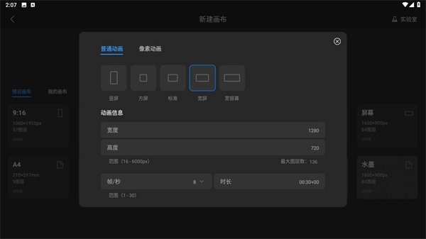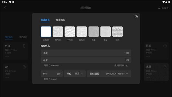 2、同时还拥有多种不同风格的画布提供选择;