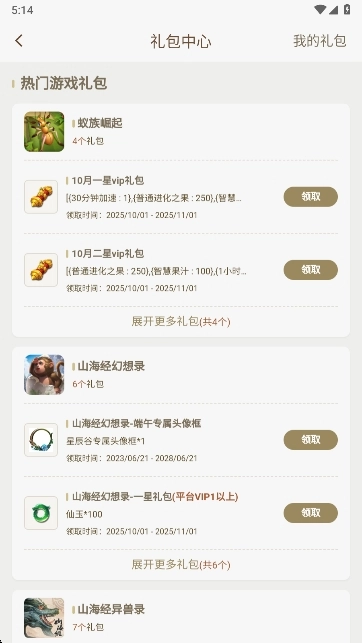 3、平台也为大家带来了热门游戏礼包可以领取