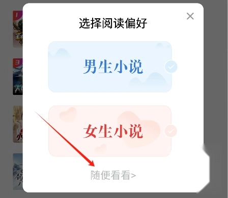 2、进入首页在弹出窗口中选择阅读偏好,也可以直接点击“随便看看”跳过这一步